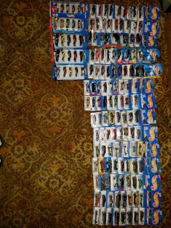 118 individual packs of unopened Hot Wheels ranging from 1991-2007. Mostly 90's Hot Wheels though. Also 5, five packs of unopened Hot Wheels as well. At least 10-15 of those cars retail from $5-$15 a piece. A couple of complete sets are in this collection too. I have a price guide that shows some of the cars in it with their retail values that would come with the collection. Just an old hobby that I no longer have an interest for. Don't have the time or desire to try to sell them individually. Not really willing to separate, would much rather sell the whole tote as one purchase. Asking $130 OBO. Call or preferably text me at 330-257-8688 any time. Thanks.