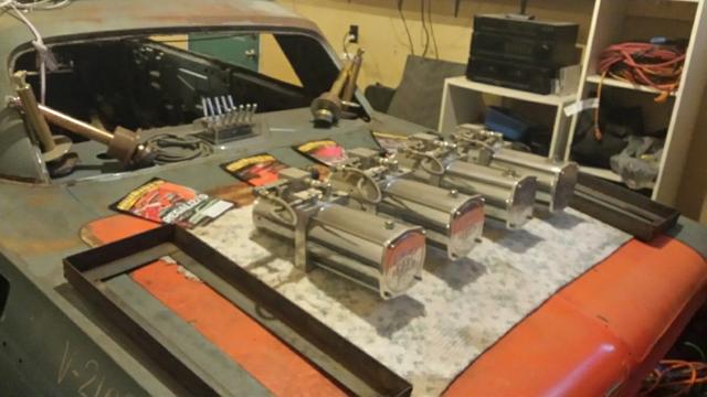 pro Hopper 4 pump competition series hydraulic setup complete with 8 inch front cylinders, 10 inch rear cylinders with power balls, pre-wired 10 switch box with extentions, Chrome shocks, ball joints, all solenoids and hydraulic hoses.. I bought this kit brand new roughly 6 years ago for 3300 and have never been used